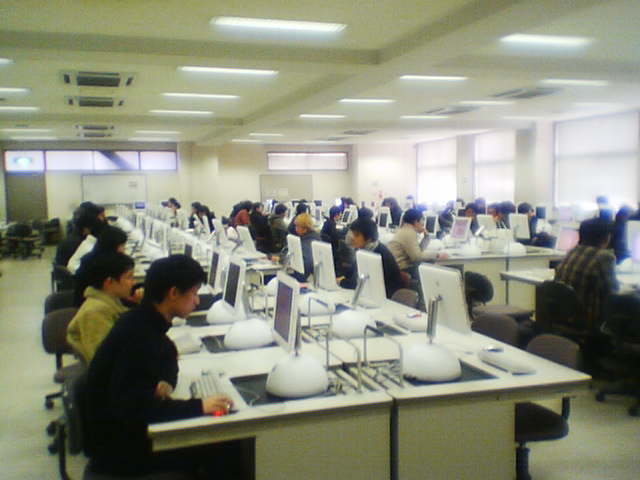学校のコンピュータがMacになった! 続報March 02, 2004大学こんな感じ。大福Macは,画面を使い方に応じて自由に動かせるのが便利。昨日,ここで電磁気の勉強をしてたとき,解答の載っているホームページをノートのすぐ横に配置して比較できたのはよかった。